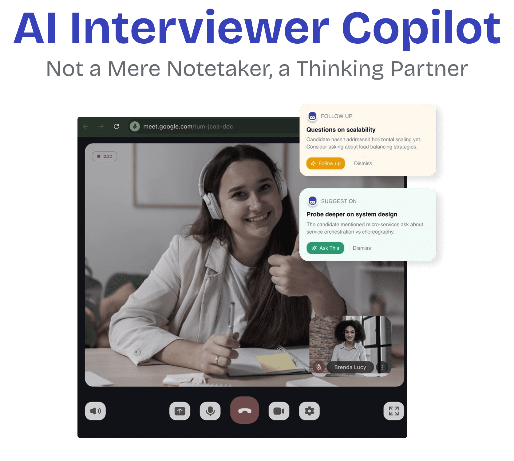 Human interview with an AI Copilot beside you. Real-time insights.